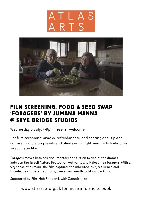 Join us at Skye Bridge studios for a screening of Foragers by Jumana Manna. We’ll serve snacks and refreshments before the film and be joined by a special guest, sharing a bit about local plant culture. Bring along seeds and plants you might want to talk about or learn more about as a group, and we’ll also have a seed swap set up in the space.
